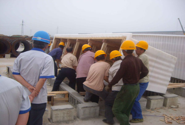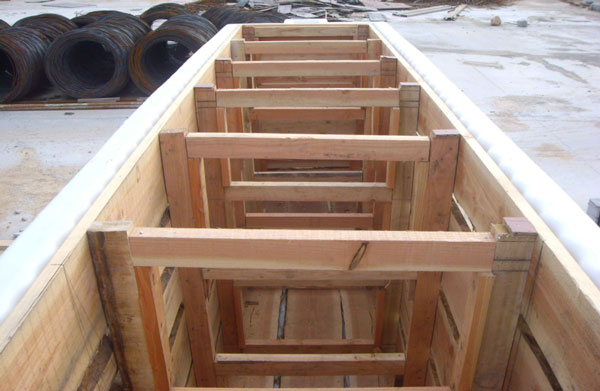 外模的安装    按照图纸要求的外形尺寸安装外模并严格进行加固以防止胀模。